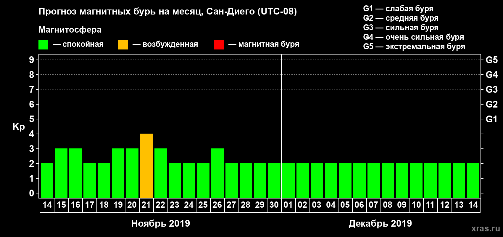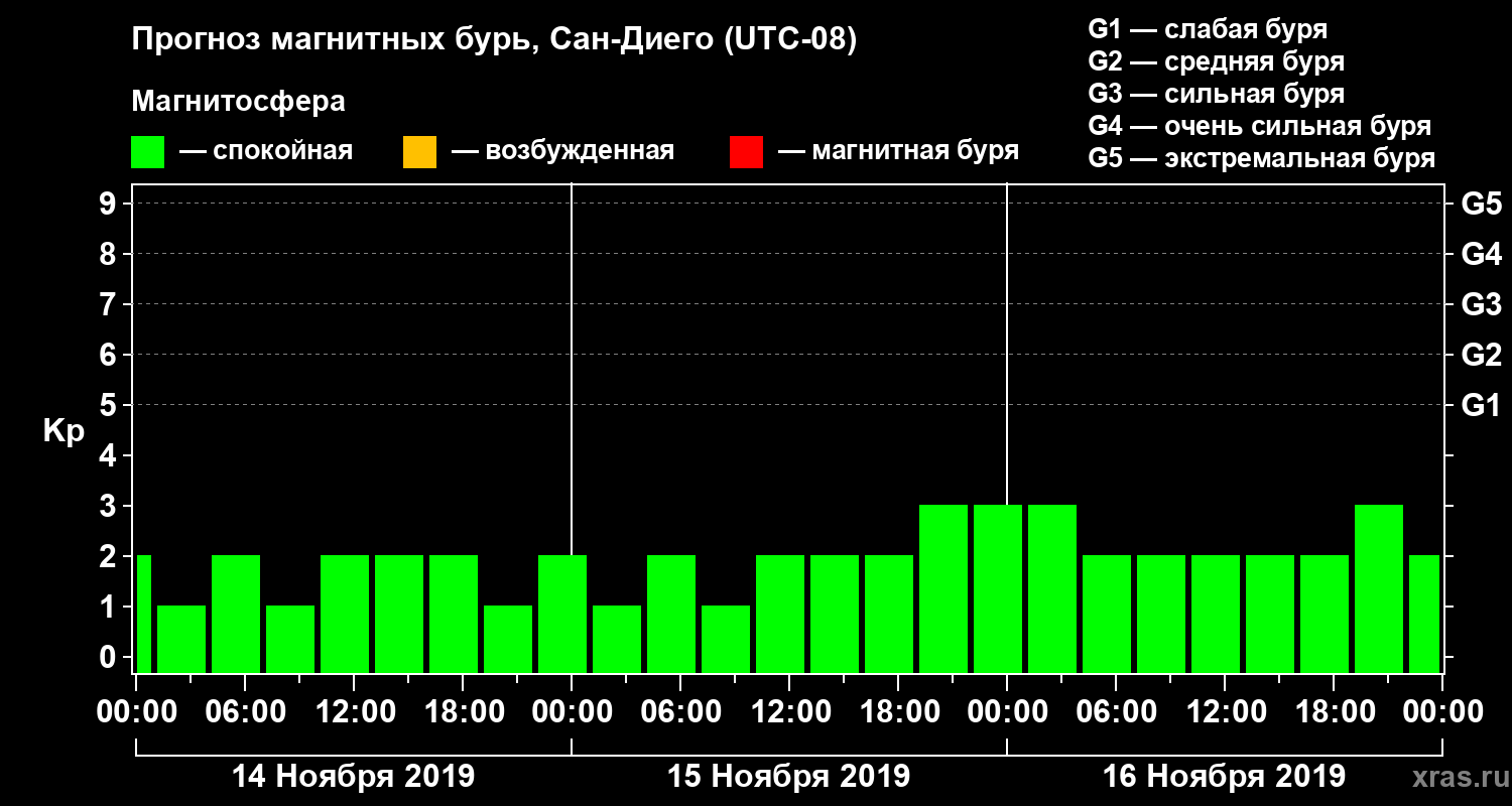 Прогноз магнитных бурь Сан-Диего — 14 ноября 2019 года