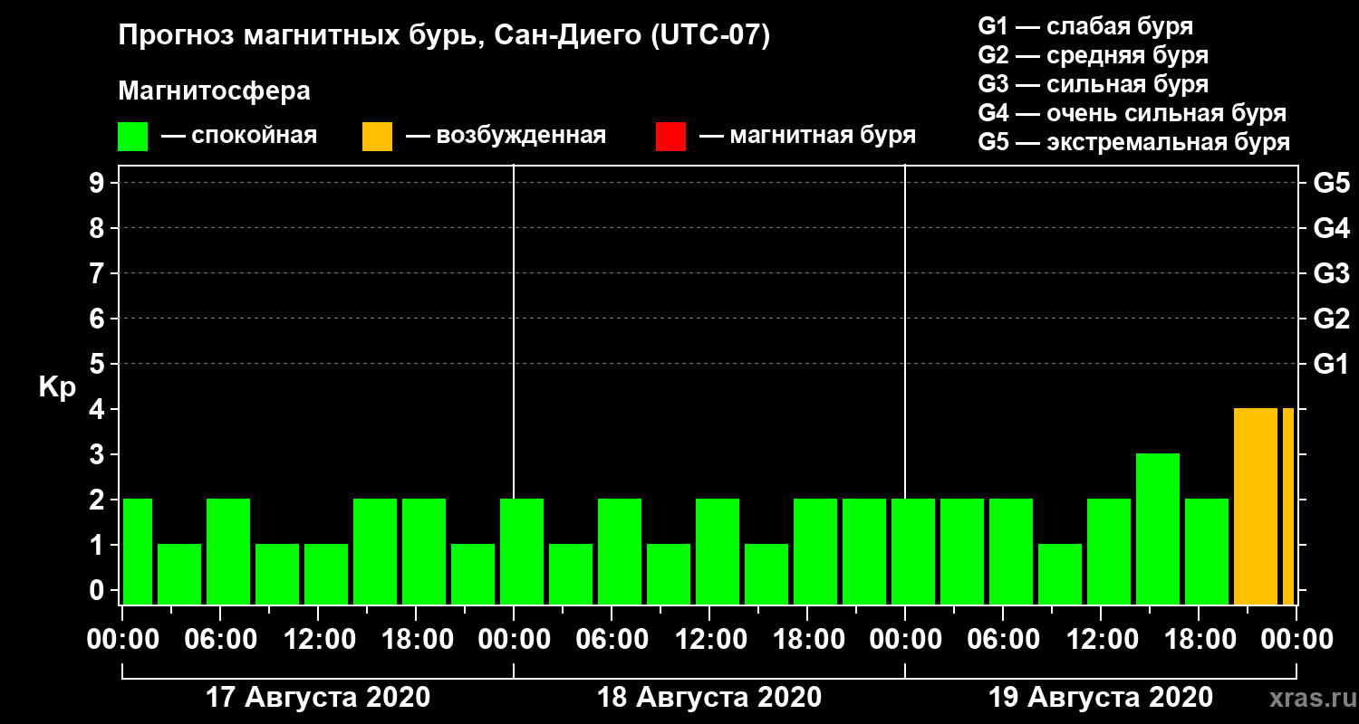 Прогноз магнитных бурь Сан-Диего на 17 августа 2020 года