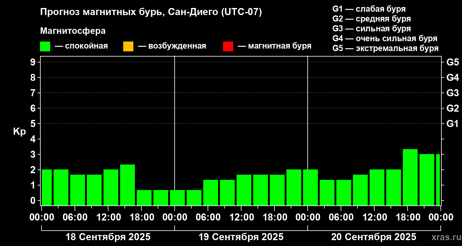 Прогноз магнитных бурь Сан-Диего на 18 сентября 2025 года