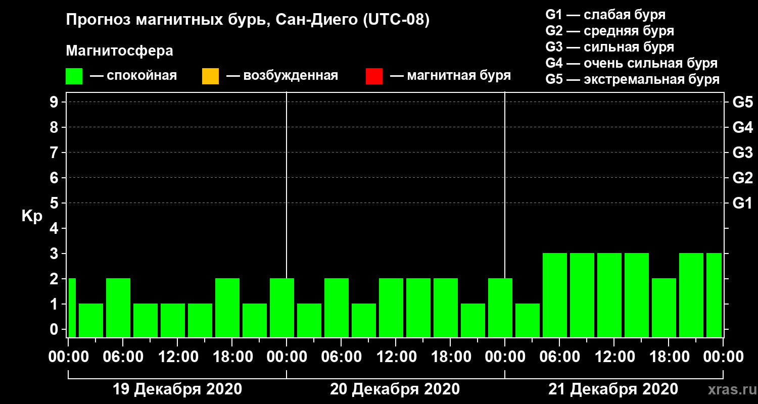 Прогноз магнитных бурь Сан-Диего на 19 декабря 2020 года