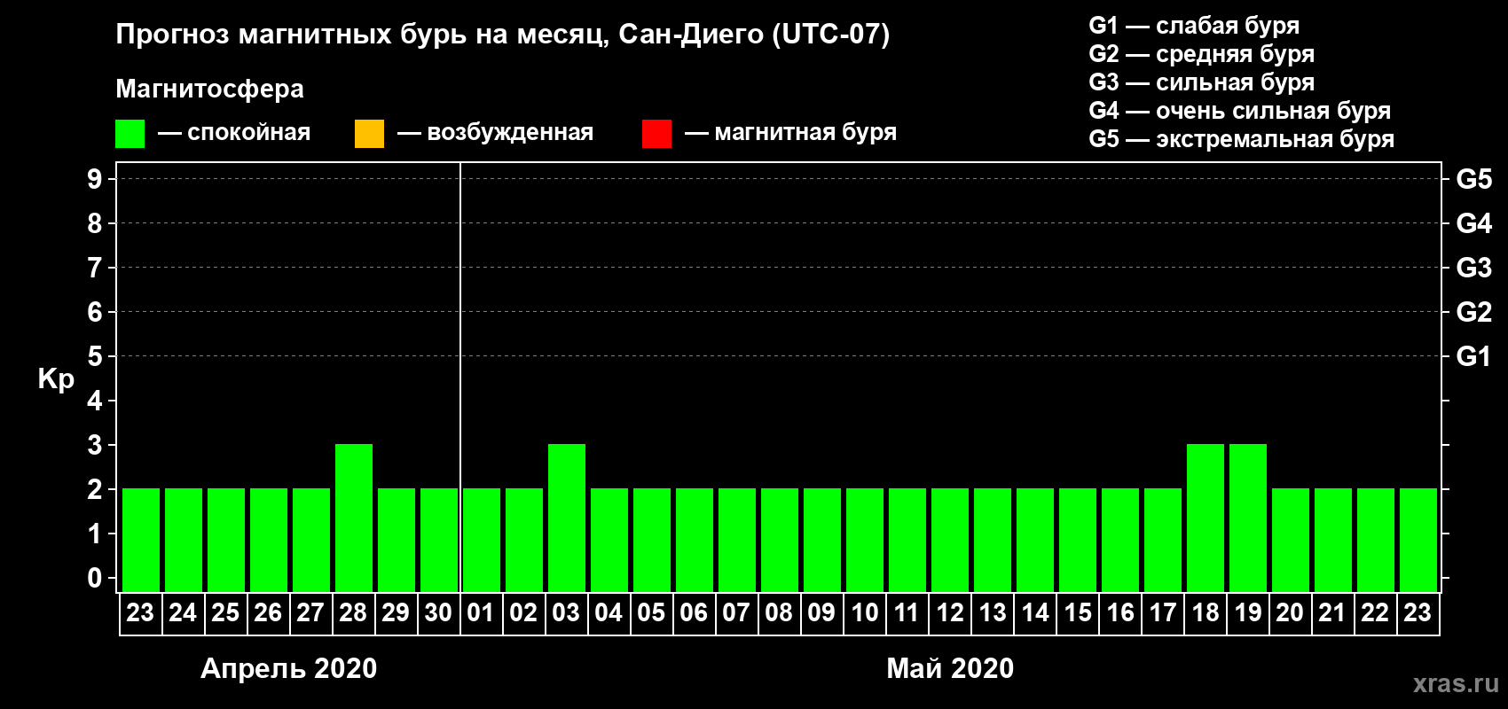 Прогноз магнитных бурь Сан-Диего на 23 апреля 2020 года
