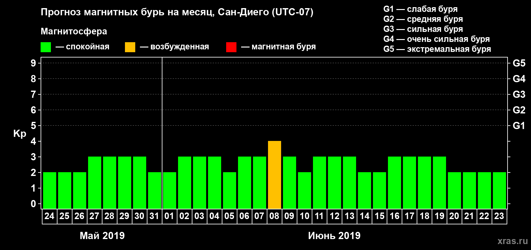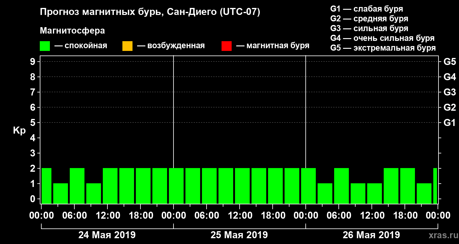 Прогноз магнитных бурь Сан-Диего — 24 мая 2019 года