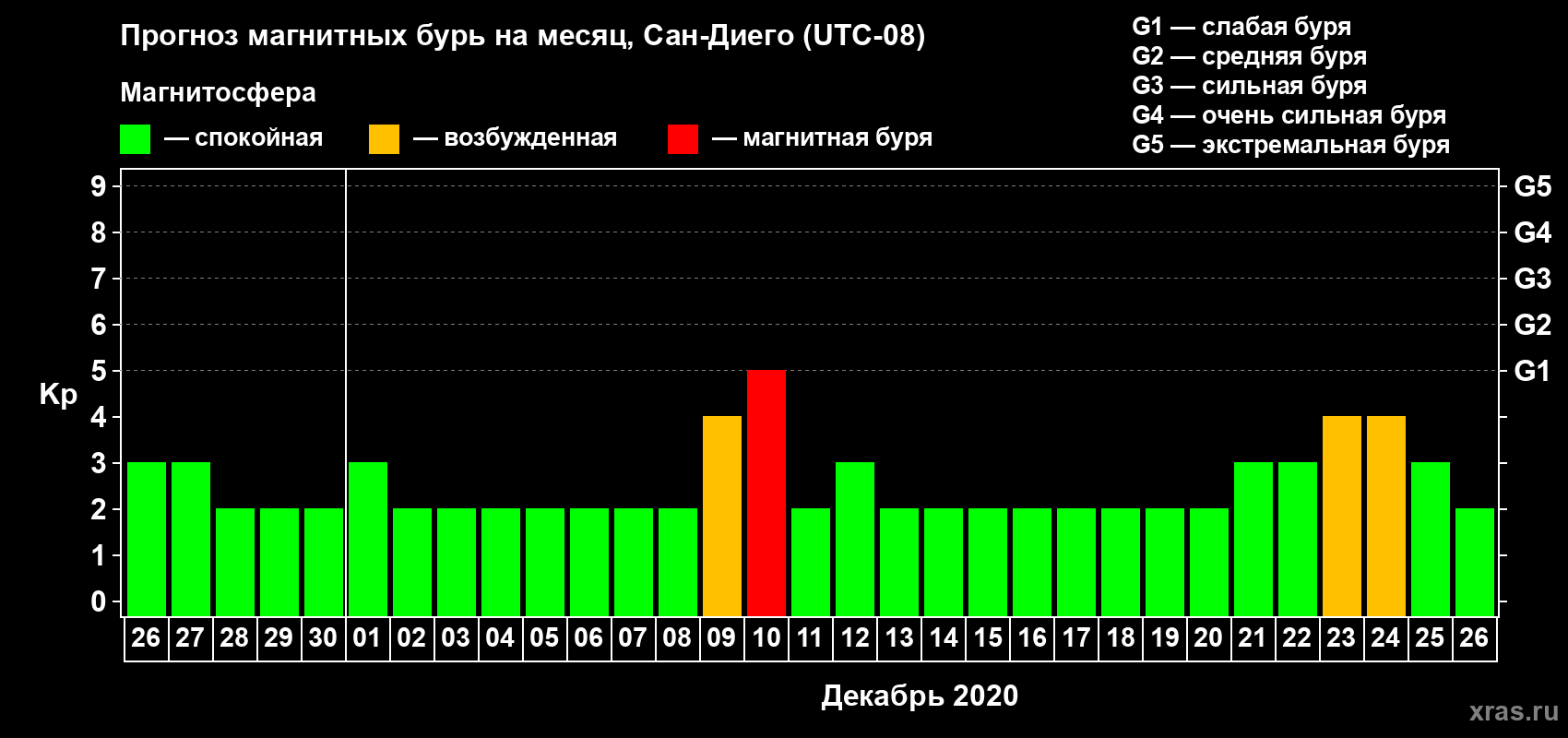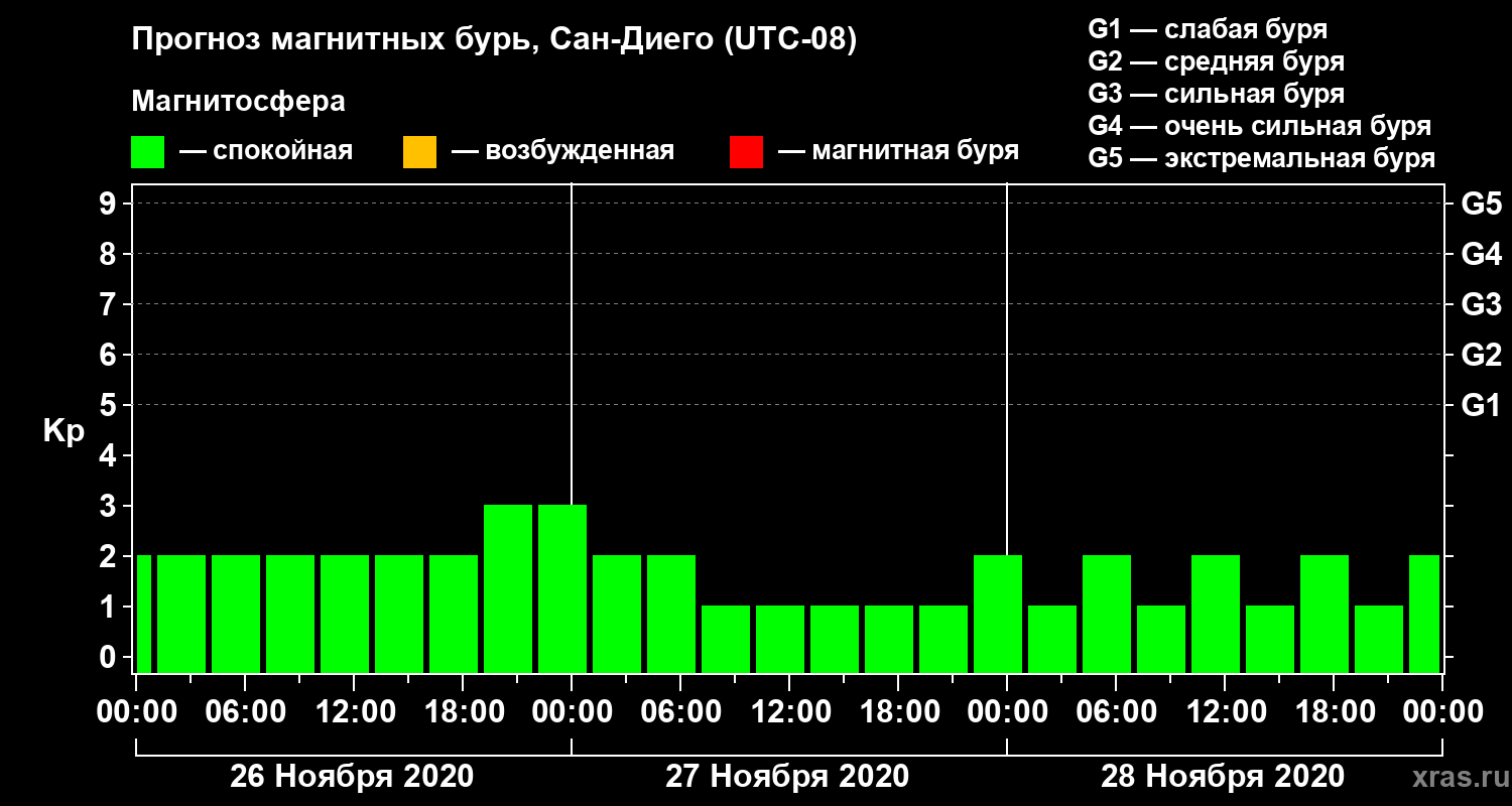 Прогноз магнитных бурь Сан-Диего — 26 ноября 2020 года