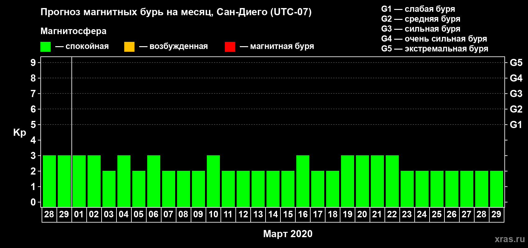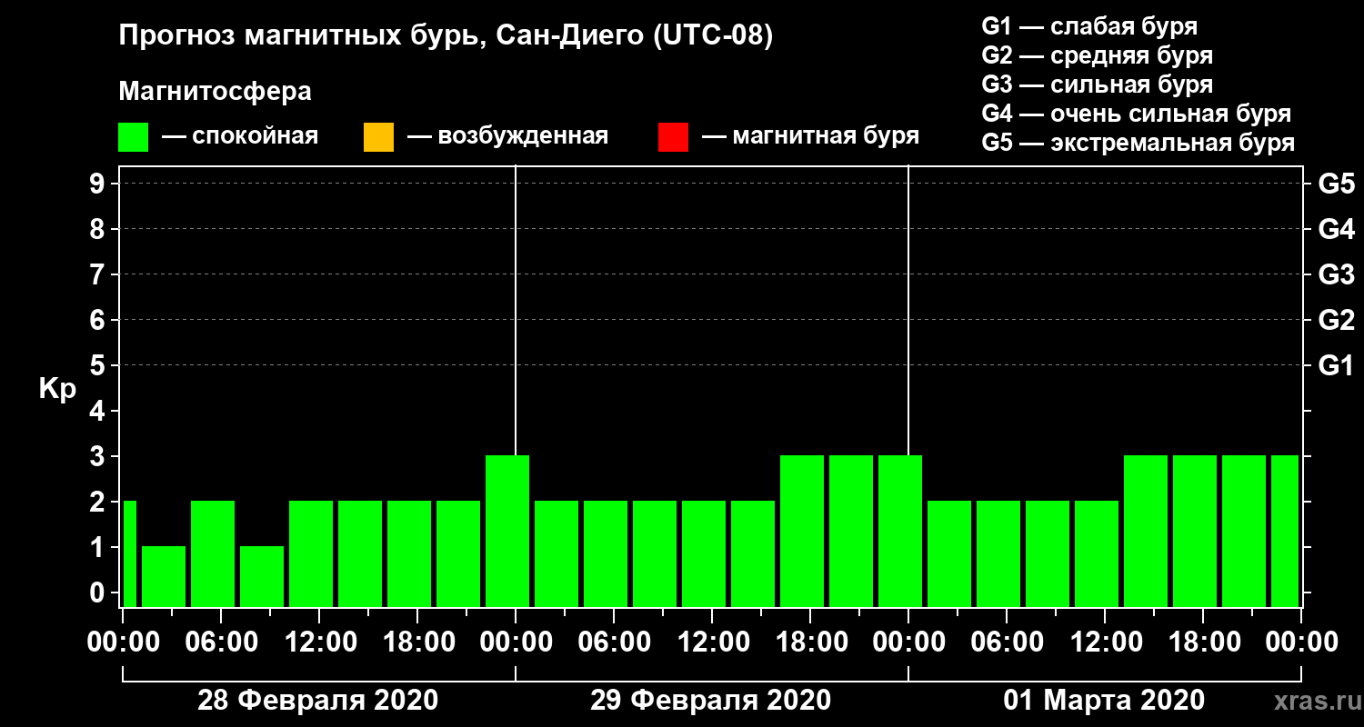 Прогноз магнитных бурь Сан-Диего — 28 февраля 2020 года