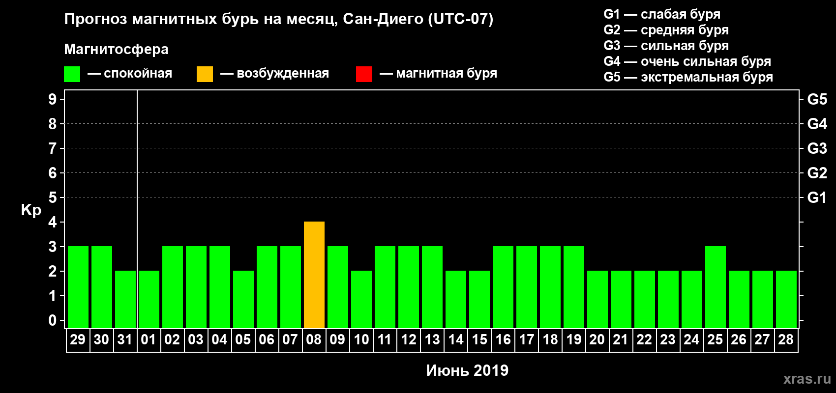 Прогноз магнитных бурь Сан-Диего — 29 мая 2019 года