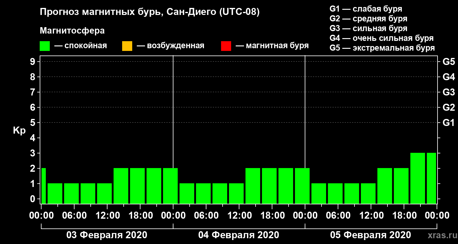 Прогноз магнитных бурь Сан-Диего на 3 февраля 2020 года