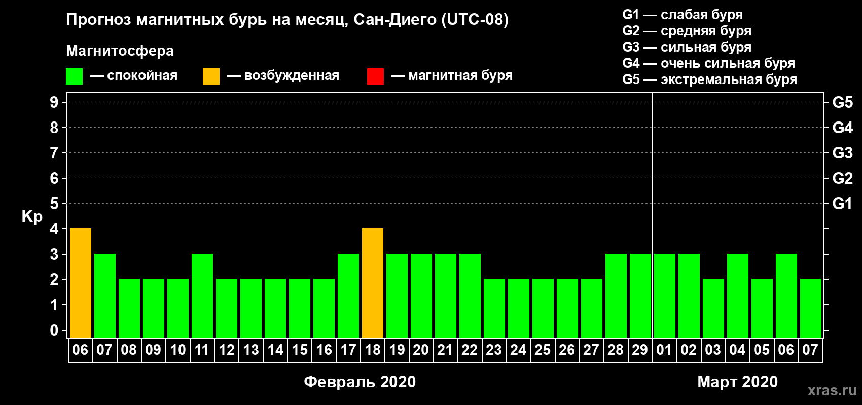 Прогноз магнитных бурь Сан-Диего на 6 февраля 2020 года