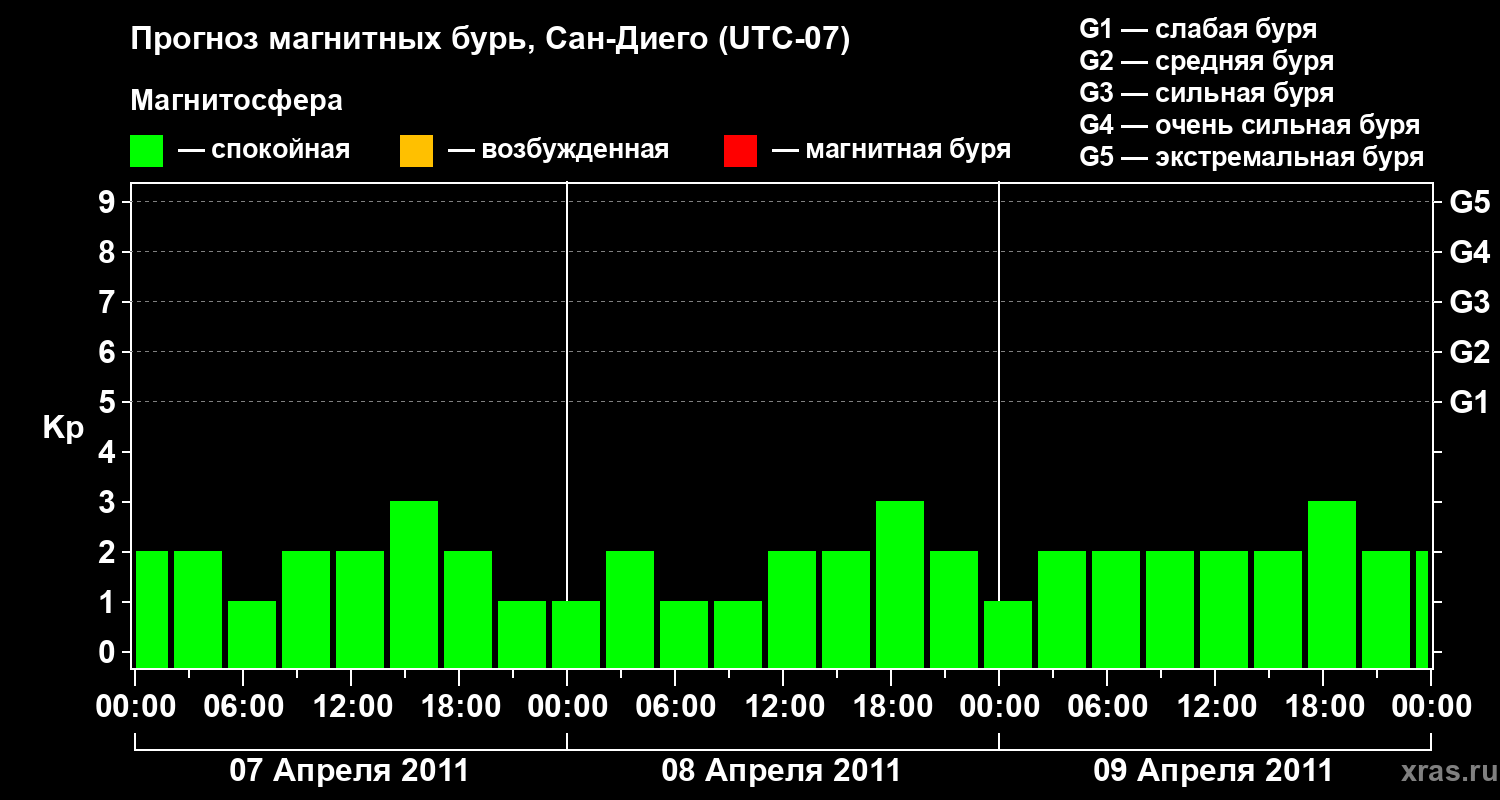 Прогноз магнитных бурь Сан-Диего на 7 апреля 2011 года