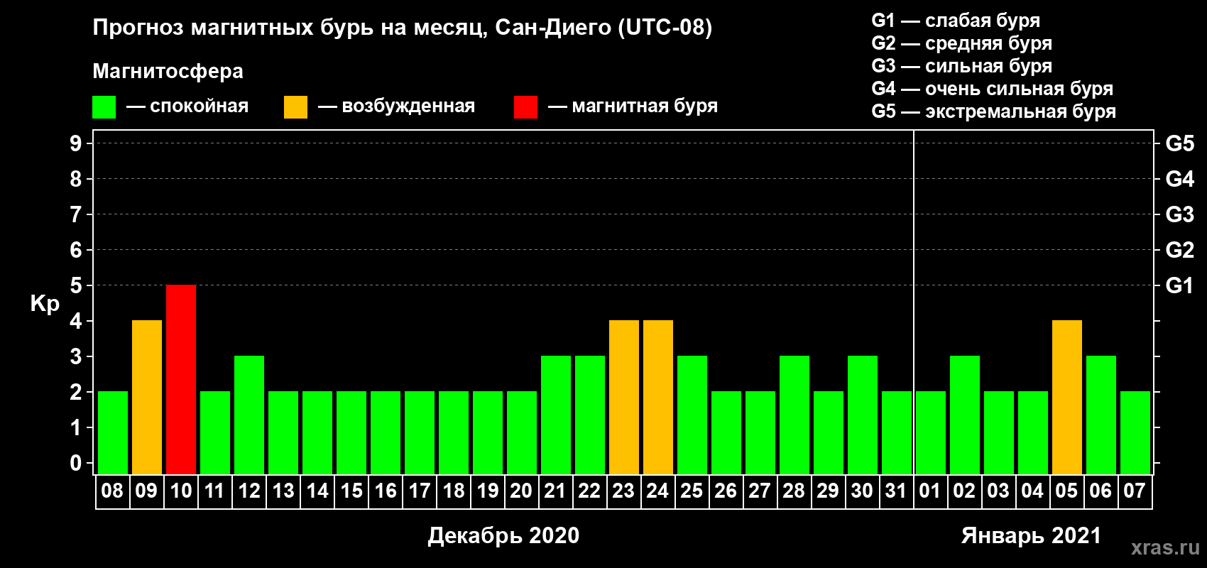 Прогноз магнитных бурь Сан-Диего — 8 декабря 2020 года