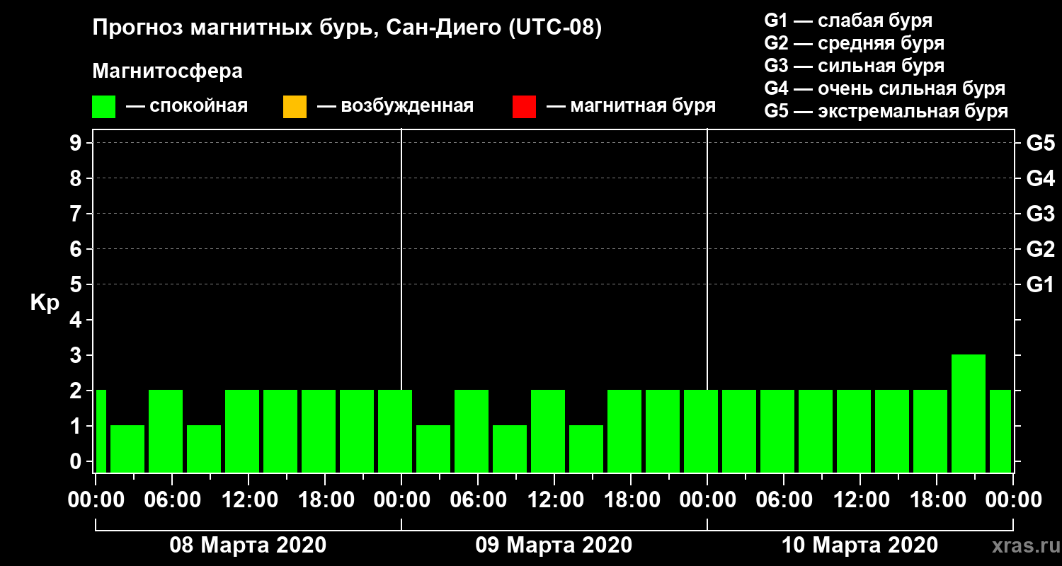 Прогноз магнитных бурь Сан-Диего на 8 марта 2020 года