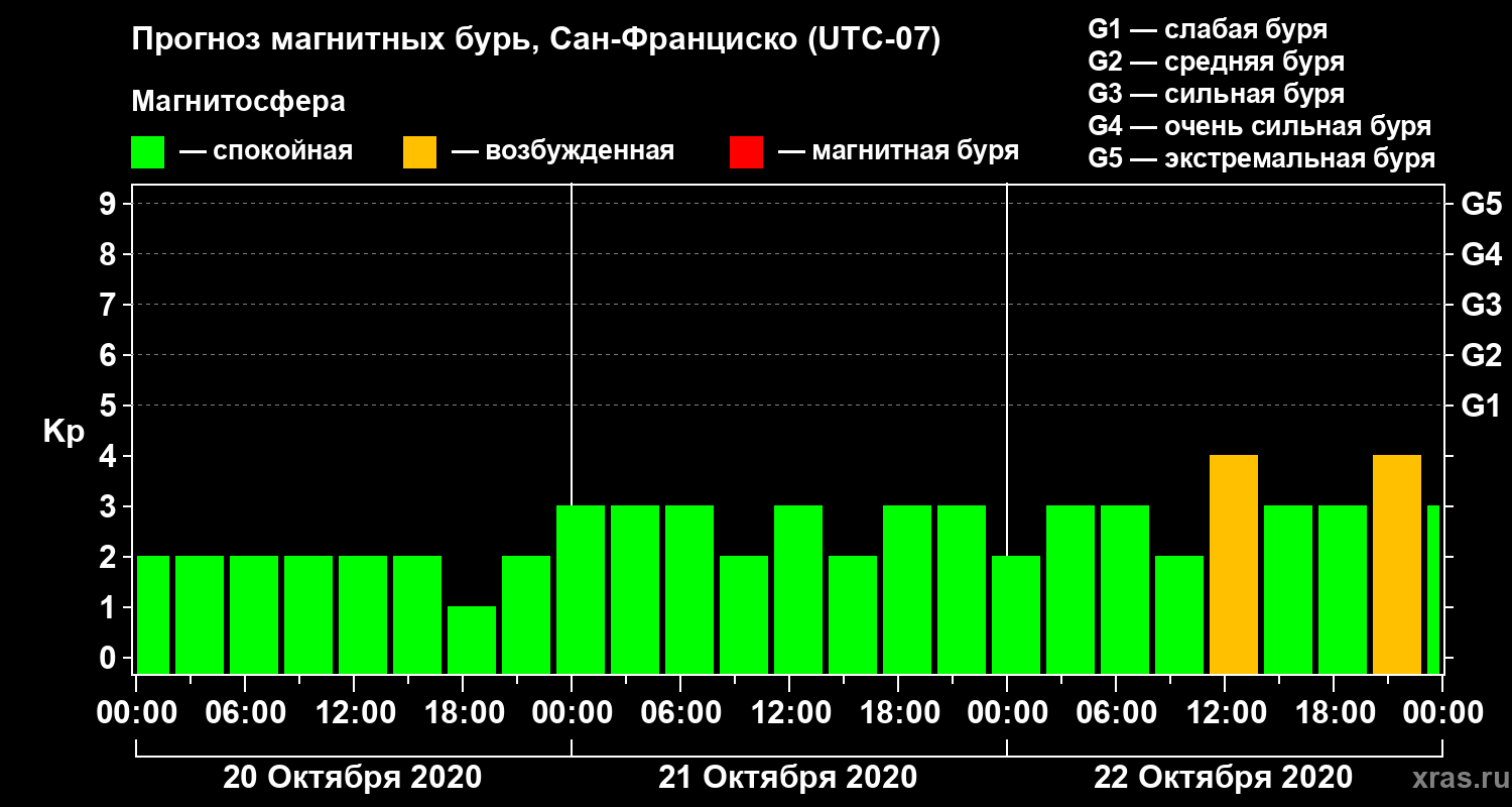 Прогноз магнитных бурь Сан-Франциско — 20 октября 2020 года