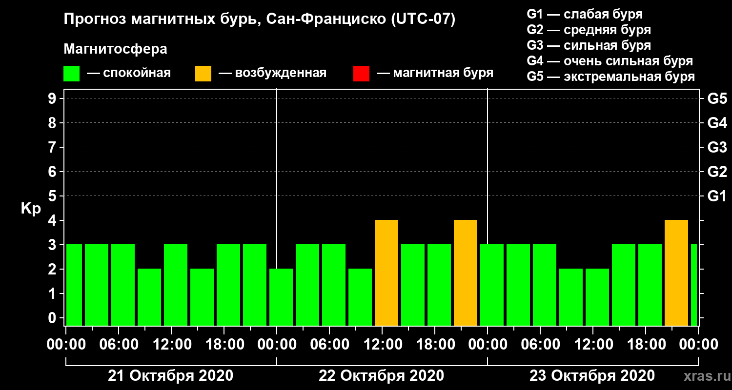 Прогноз магнитных бурь Сан-Франциско — 21 октября 2020 года