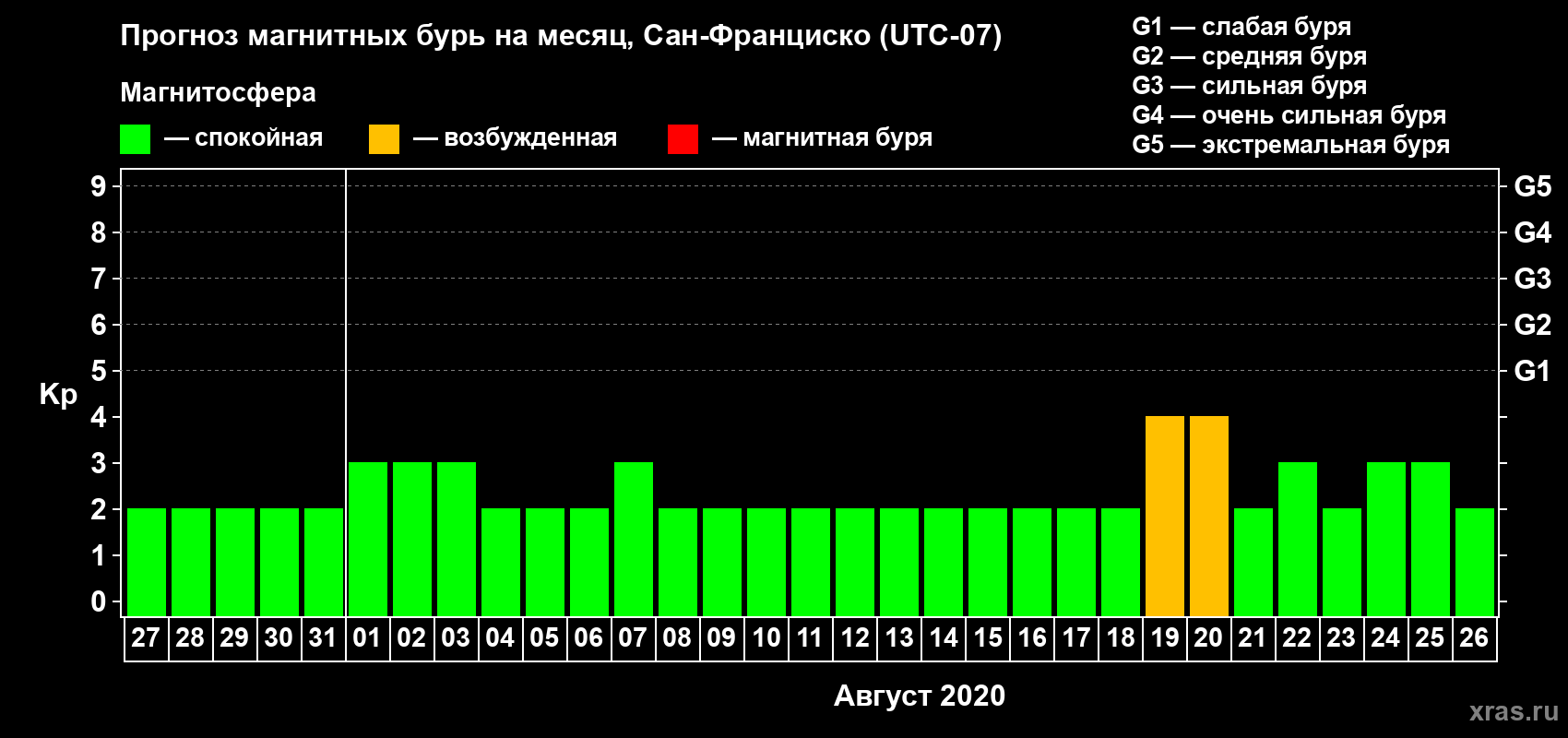 Прогноз магнитных бурь Сан-Франциско — 27 июля 2020 года