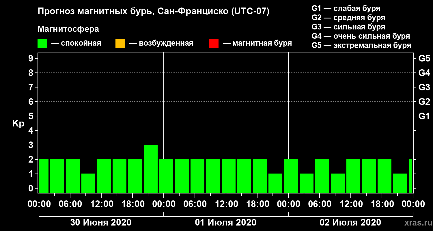 Прогноз магнитных бурь Сан-Франциско — 30 июня 2020 года