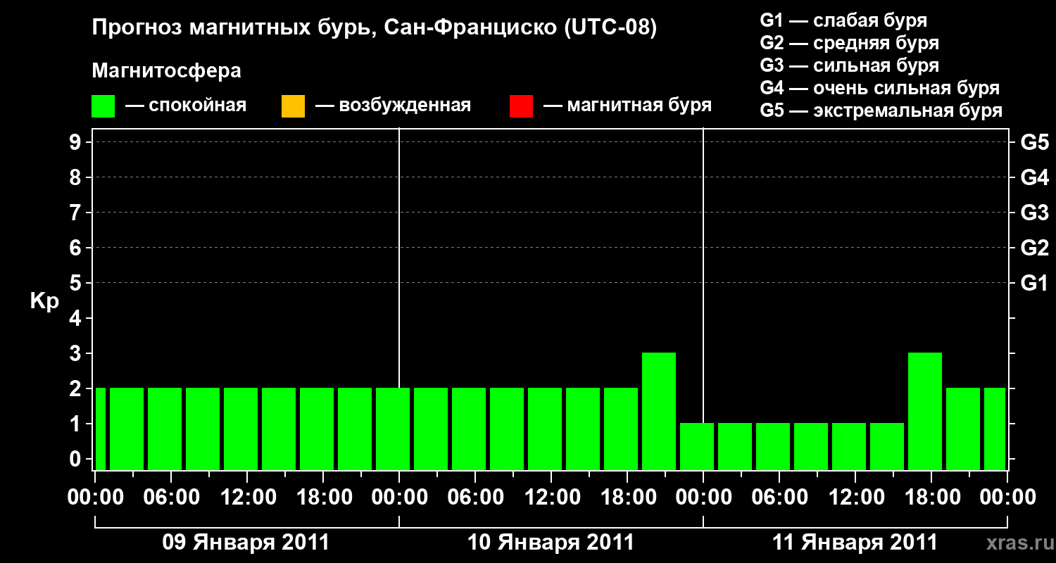 Прогноз магнитных бурь Сан-Франциско — 9 января 2011 года