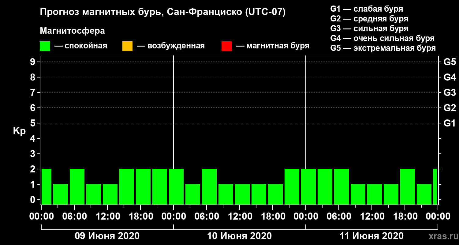 Прогноз магнитных бурь Сан-Франциско — 9 июня 2020 года