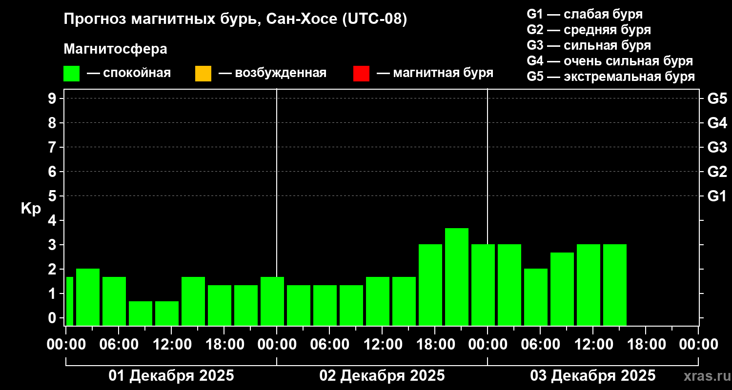 Прогноз магнитных бурь в Сан-Хосе на 1 декабря 2025 года
