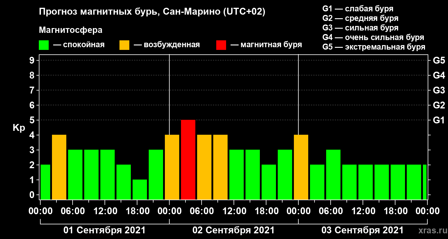 Прогноз магнитных бурь Сан-Марино — 1 сентября 2021 года