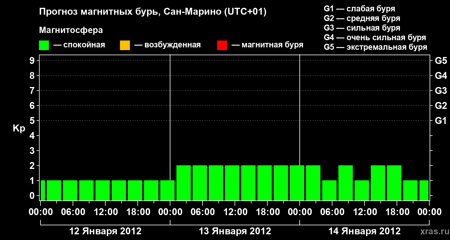 Прогноз магнитных бурь Сан-Марино — 12 января 2012 года