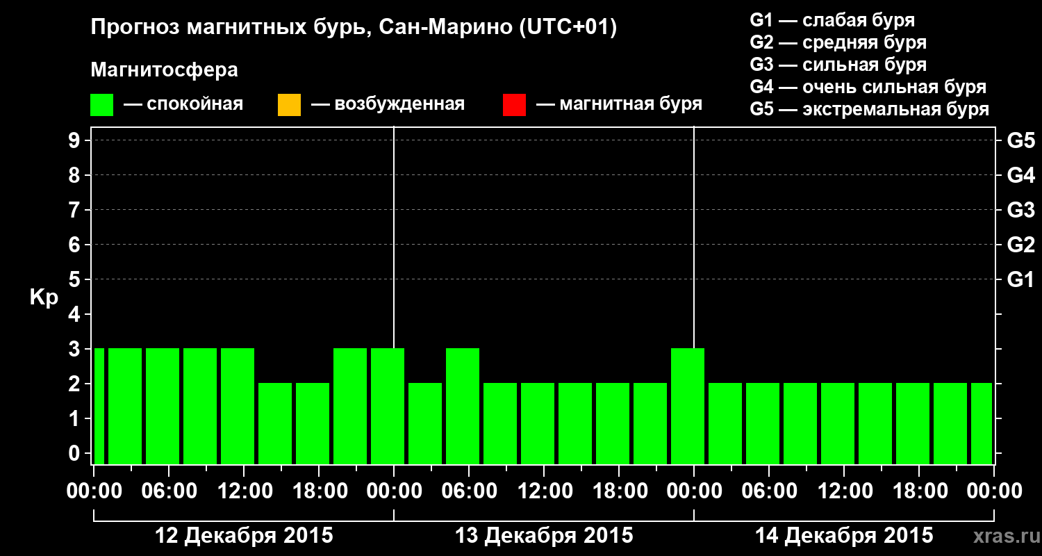 Прогноз магнитных бурь Сан-Марино на 12 декабря 2015 года