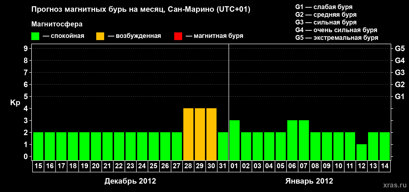 Прогноз магнитных бурь Сан-Марино на 15 декабря 2011 года