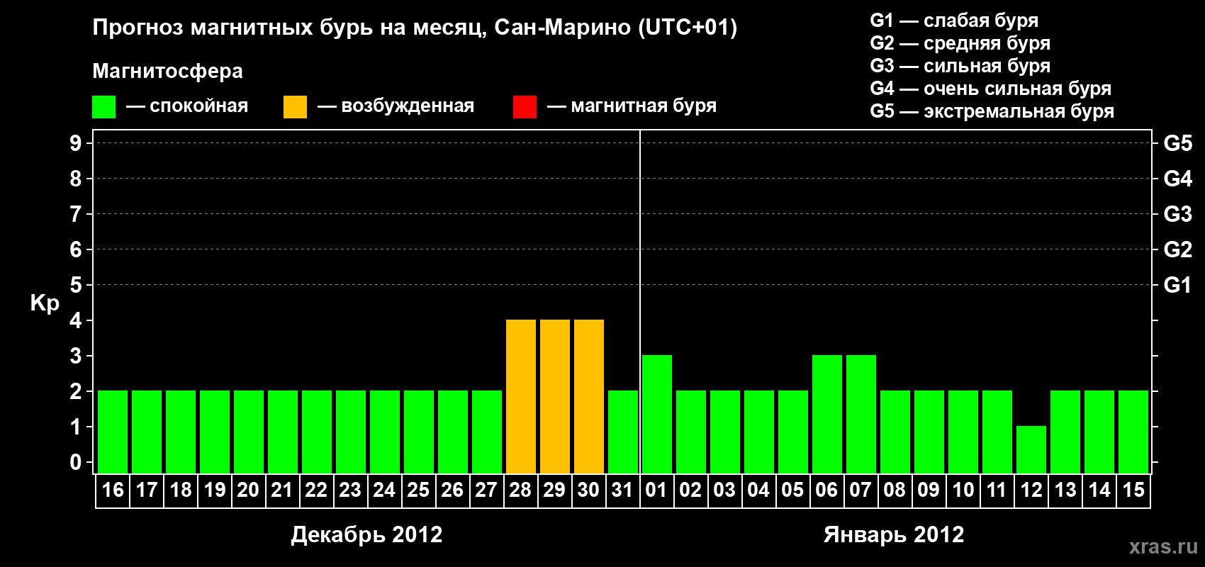 Прогноз магнитных бурь Сан-Марино — 16 декабря 2011 года