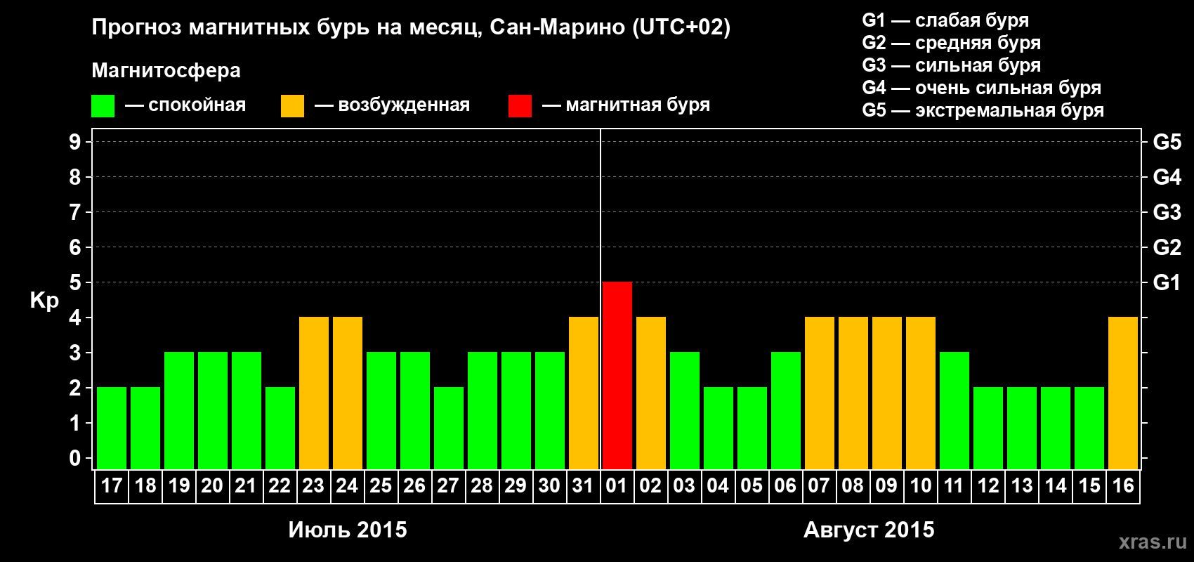 Прогноз магнитных бурь Сан-Марино — 17 июля 2015 года