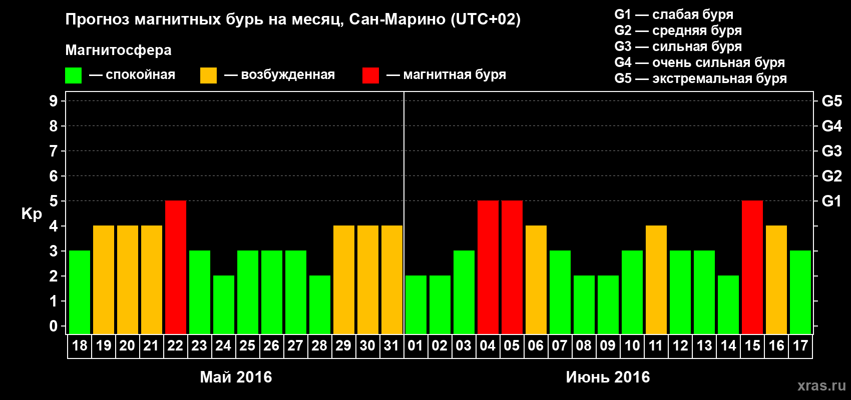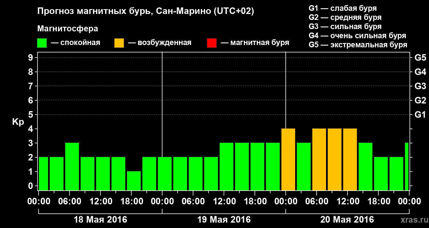 Прогноз магнитных бурь Сан-Марино — 18 мая 2016 года