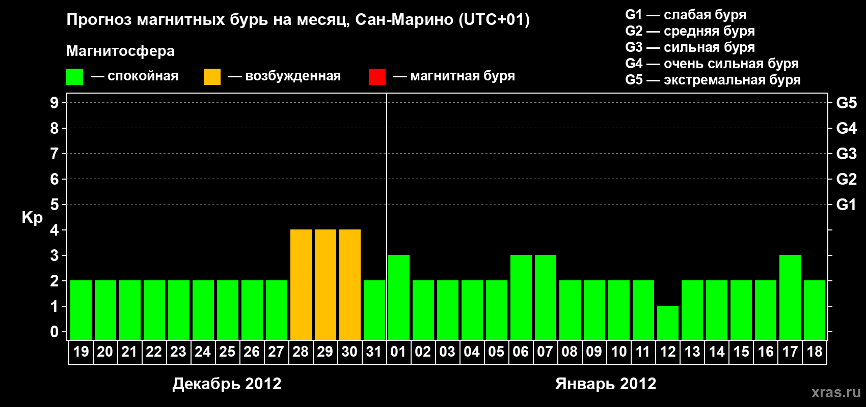 Прогноз магнитных бурь Сан-Марино на 19 декабря 2011 года