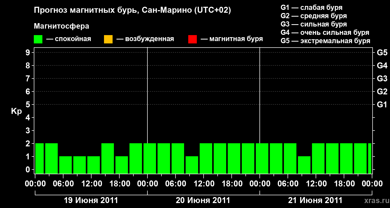 Прогноз магнитных бурь Сан-Марино на 19 июня 2011 года