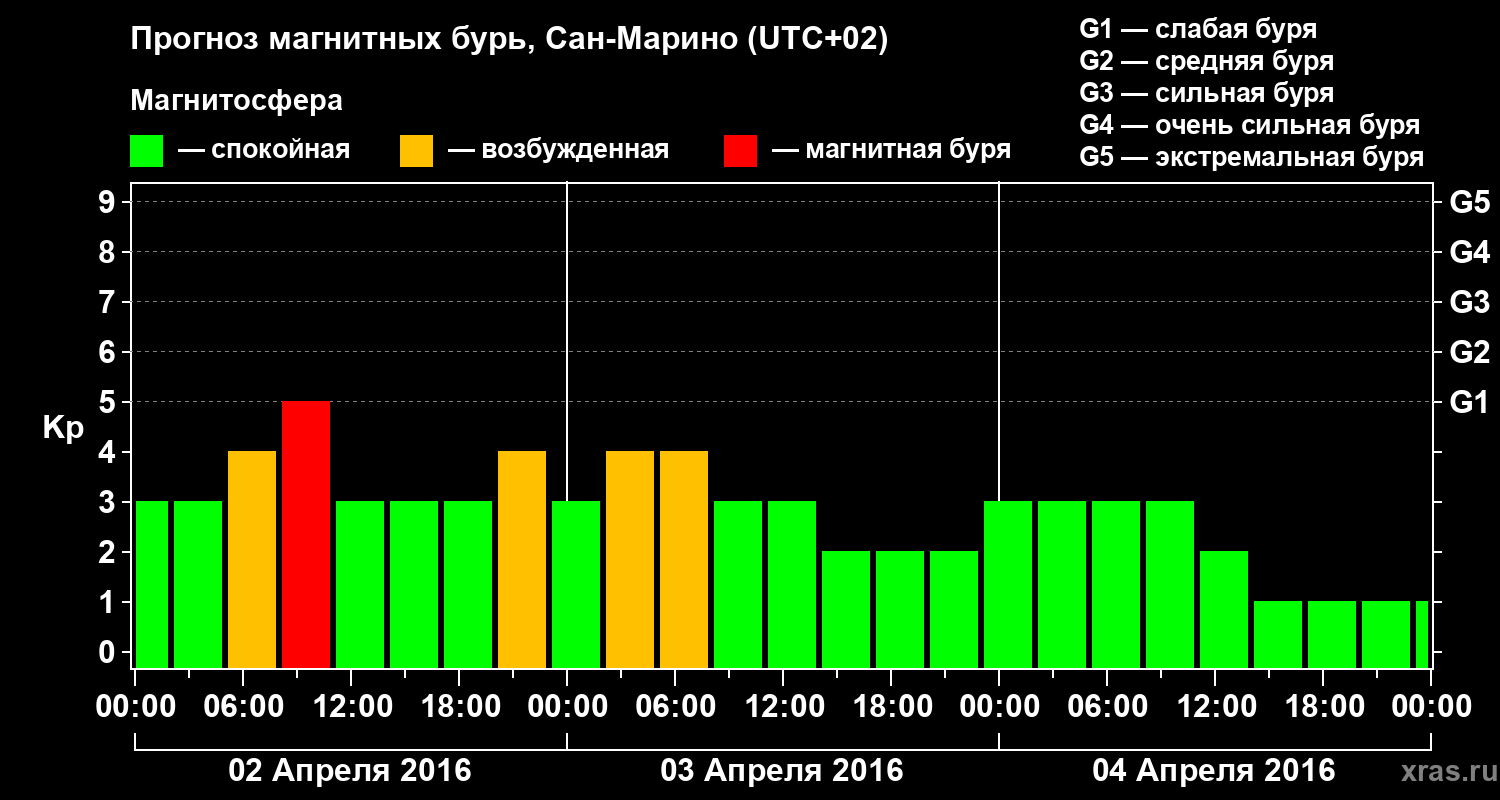 Прогноз магнитных бурь Сан-Марино — 2 апреля 2016 года