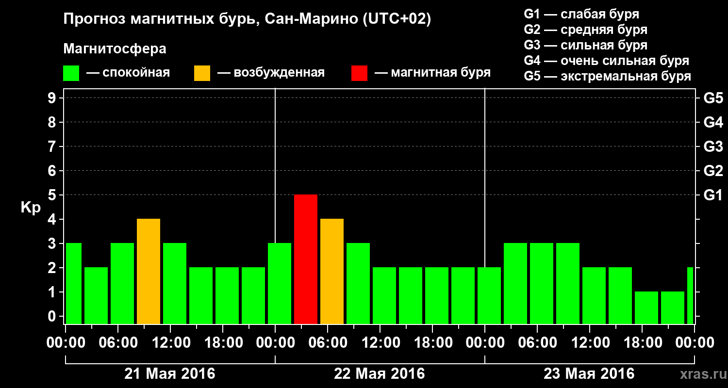 Прогноз магнитных бурь Сан-Марино — 21 мая 2016 года