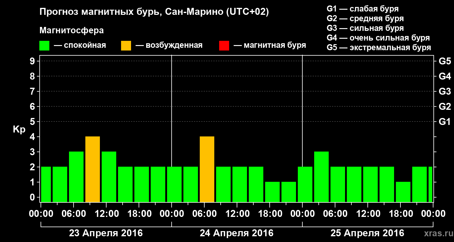 Прогноз магнитных бурь Сан-Марино на 23 апреля 2016 года