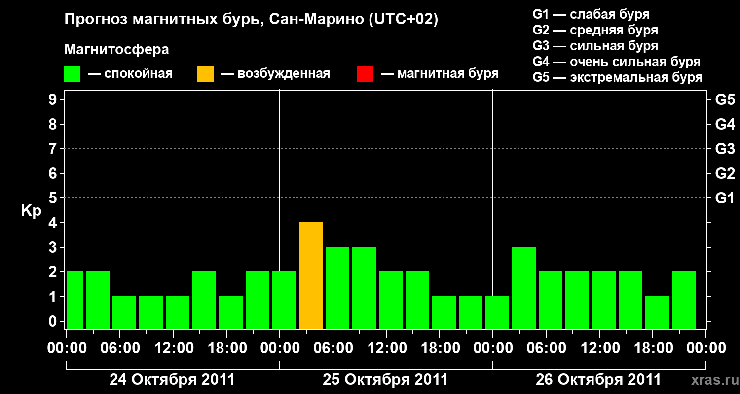Прогноз магнитных бурь Сан-Марино на 24 октября 2011 года