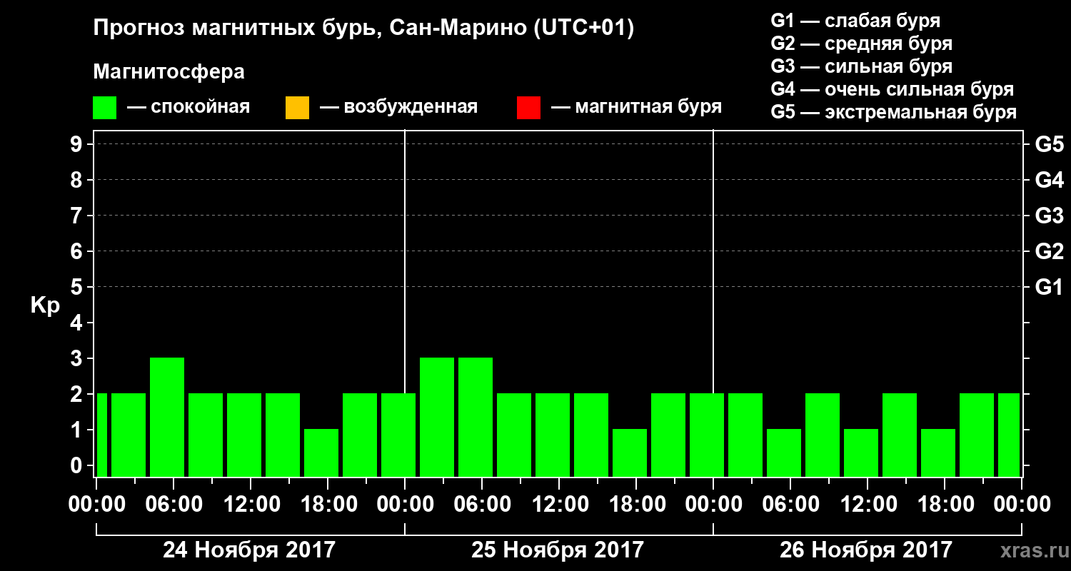 Прогноз магнитных бурь Сан-Марино на 24 ноября 2017 года