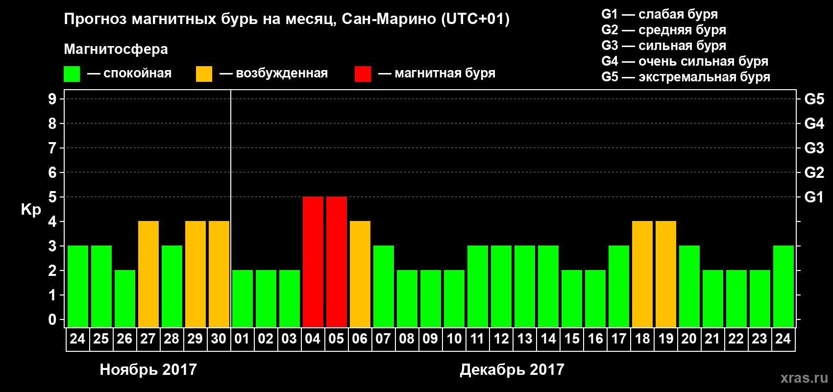 Прогноз магнитных бурь Сан-Марино — 24 ноября 2017 года