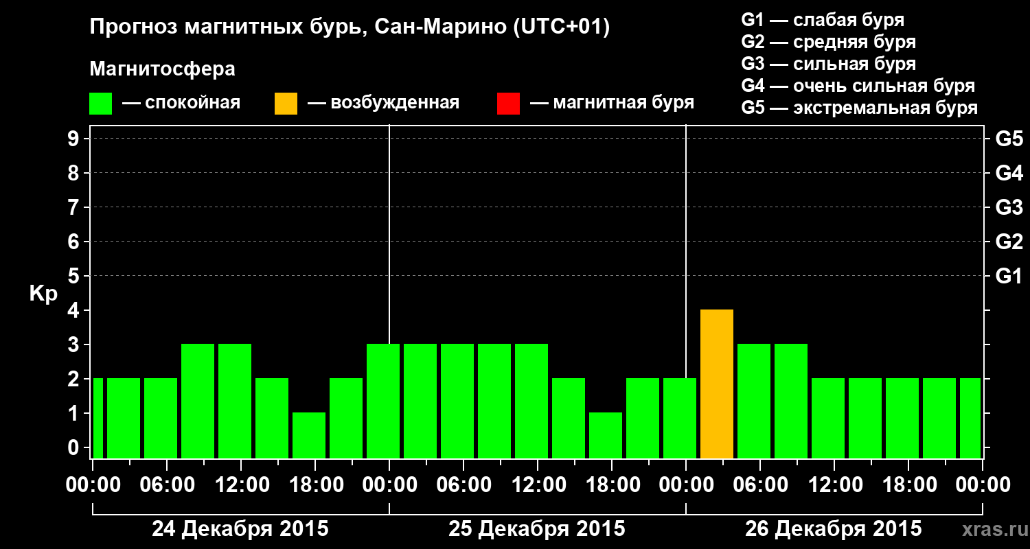Прогноз магнитных бурь Сан-Марино — 24 декабря 2015 года