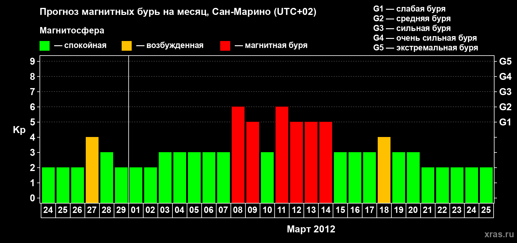 Прогноз магнитных бурь Сан-Марино — 24 февраля 2012 года