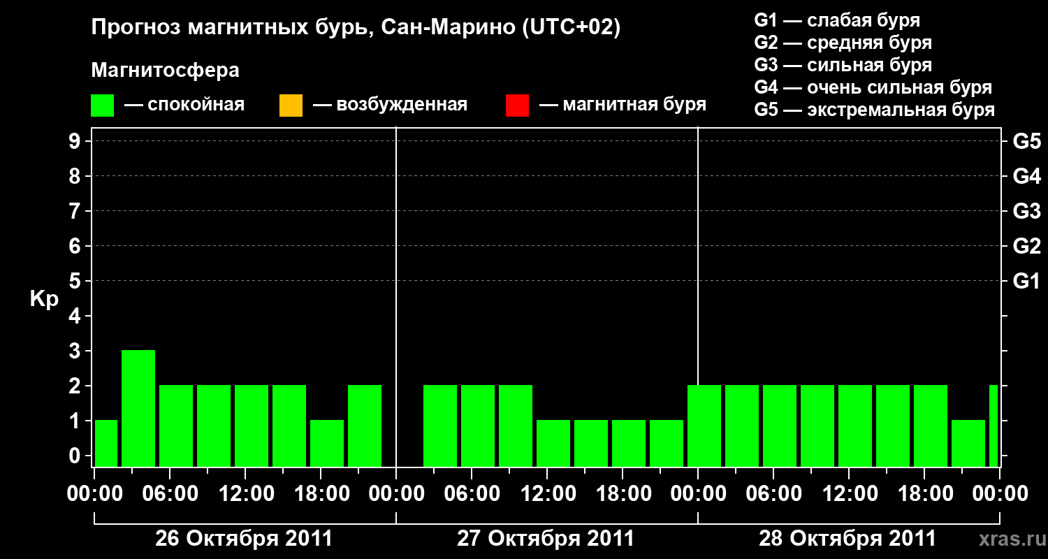 Прогноз магнитных бурь Сан-Марино на 26 октября 2011 года