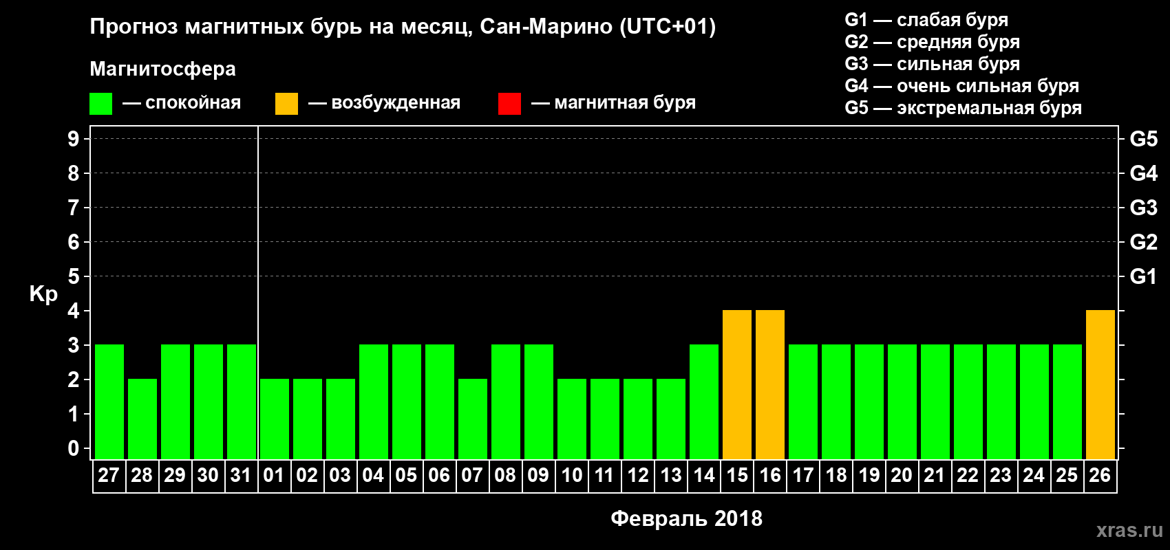 Прогноз магнитных бурь Сан-Марино — 27 января 2018 года