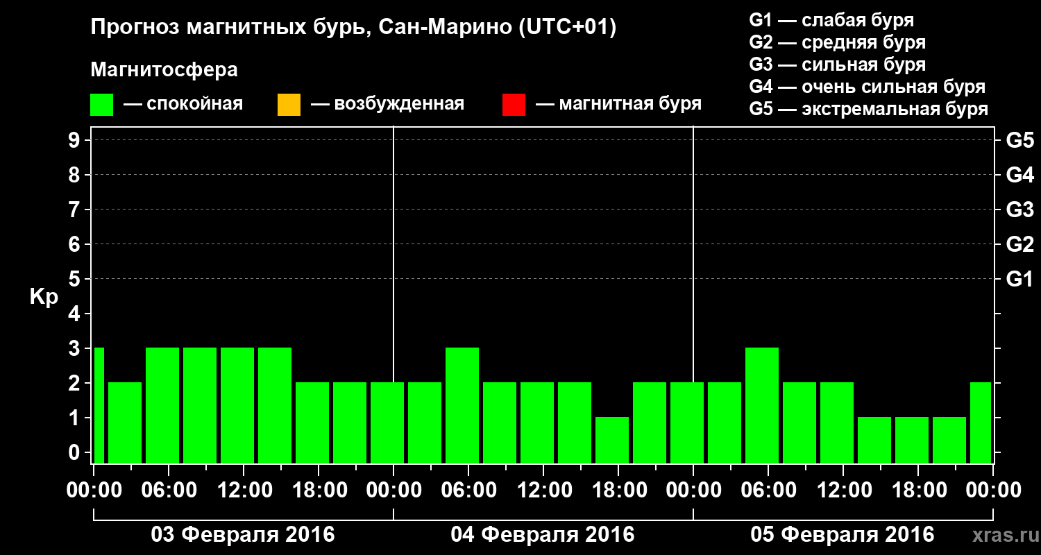 Прогноз магнитных бурь Сан-Марино на 3 февраля 2016 года