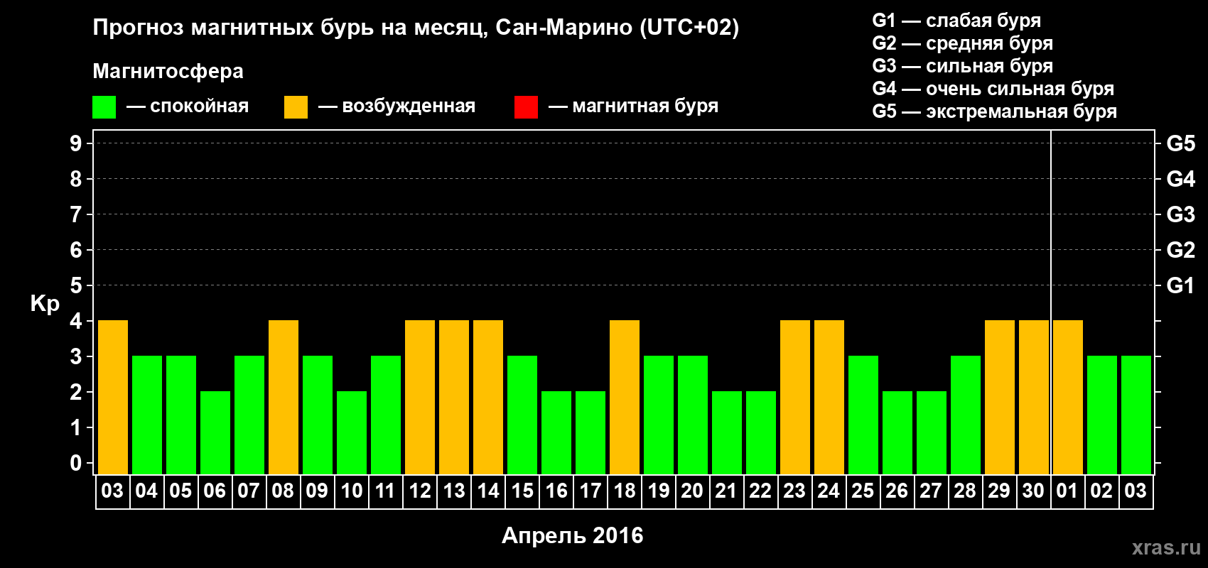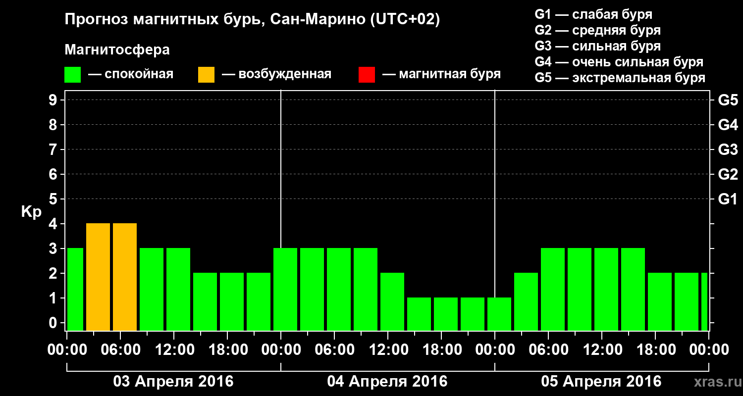 Прогноз магнитных бурь Сан-Марино — 3 апреля 2016 года