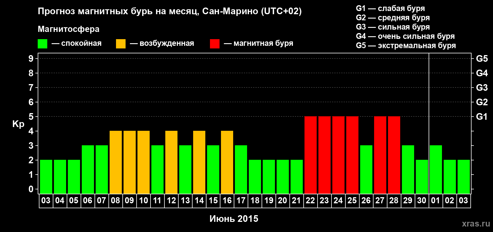 Прогноз магнитных бурь Сан-Марино — 3 июня 2015 года