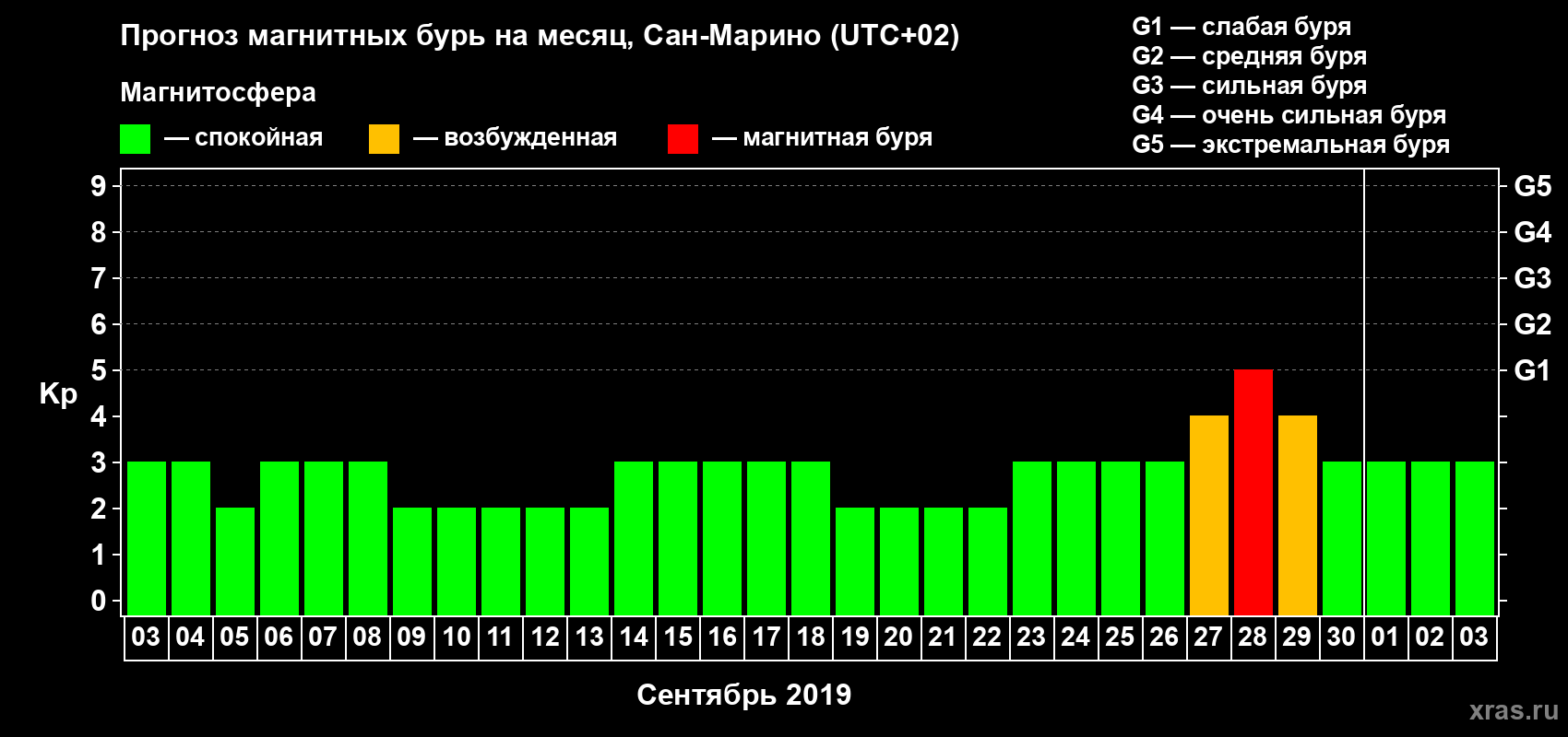 Прогноз магнитных бурь Сан-Марино — 3 сентября 2019 года
