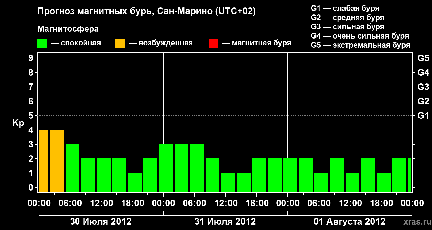 Прогноз магнитных бурь Сан-Марино на 30 июля 2012 года