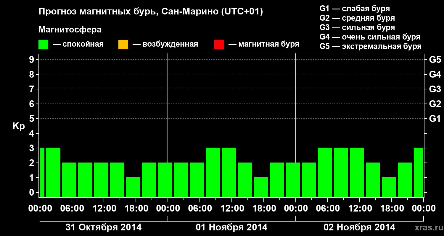 Прогноз магнитных бурь Сан-Марино на 31 октября 2014 года