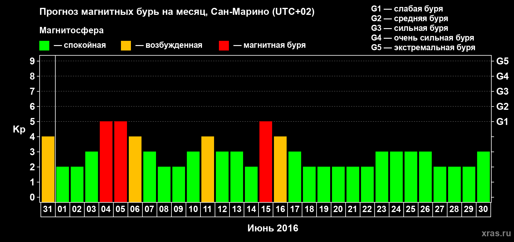 Прогноз магнитных бурь Сан-Марино — 31 мая 2016 года