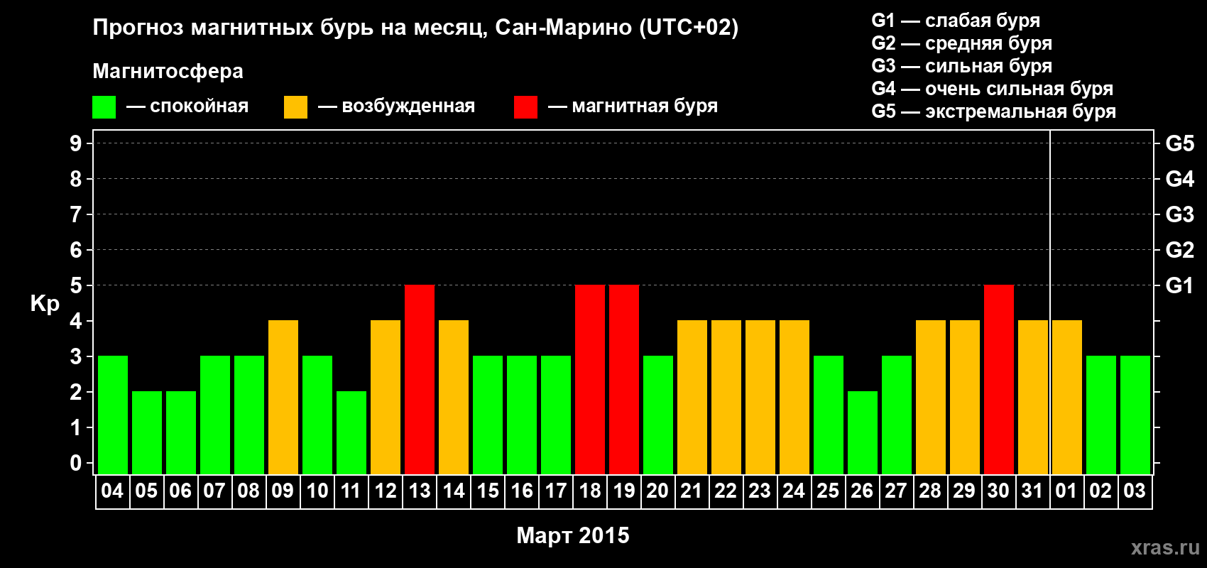 Прогноз магнитных бурь Сан-Марино — 4 марта 2015 года