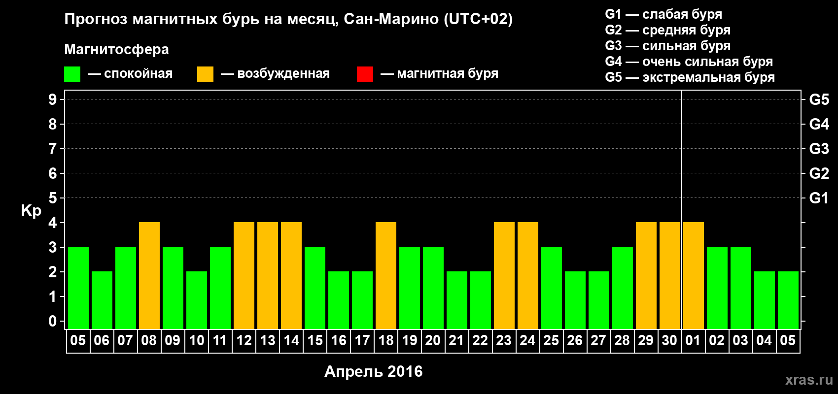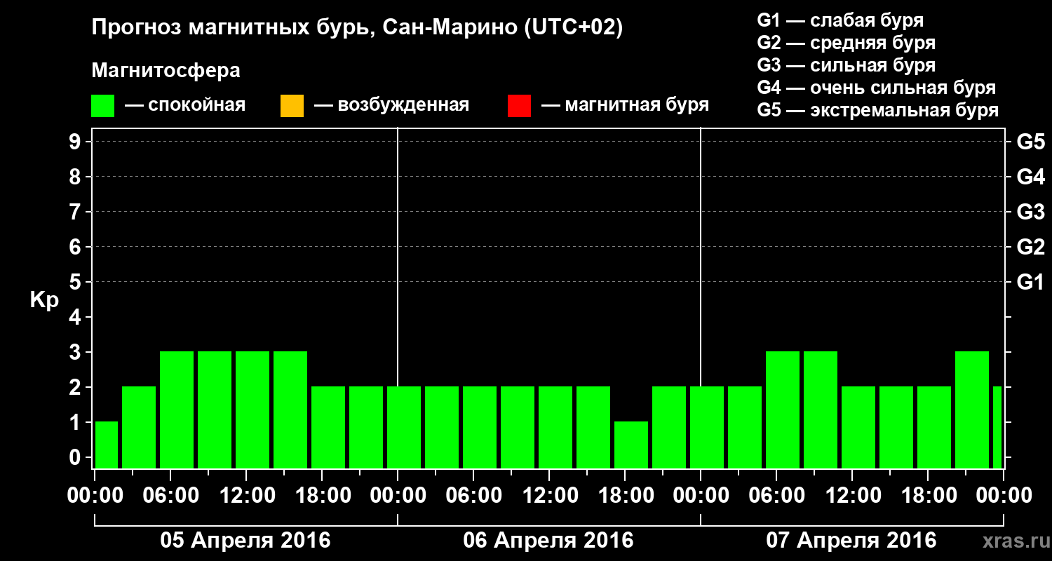 Прогноз магнитных бурь Сан-Марино — 5 апреля 2016 года