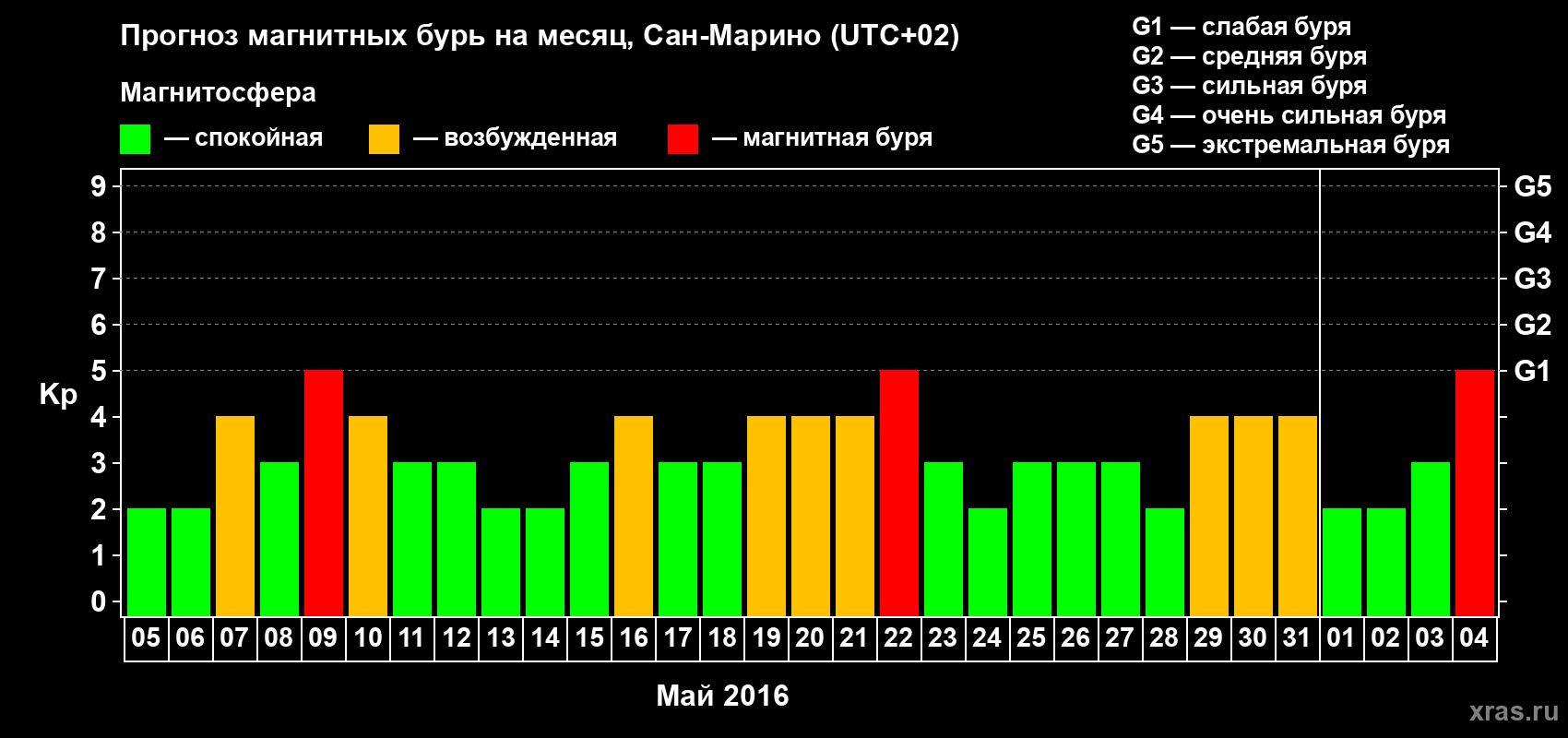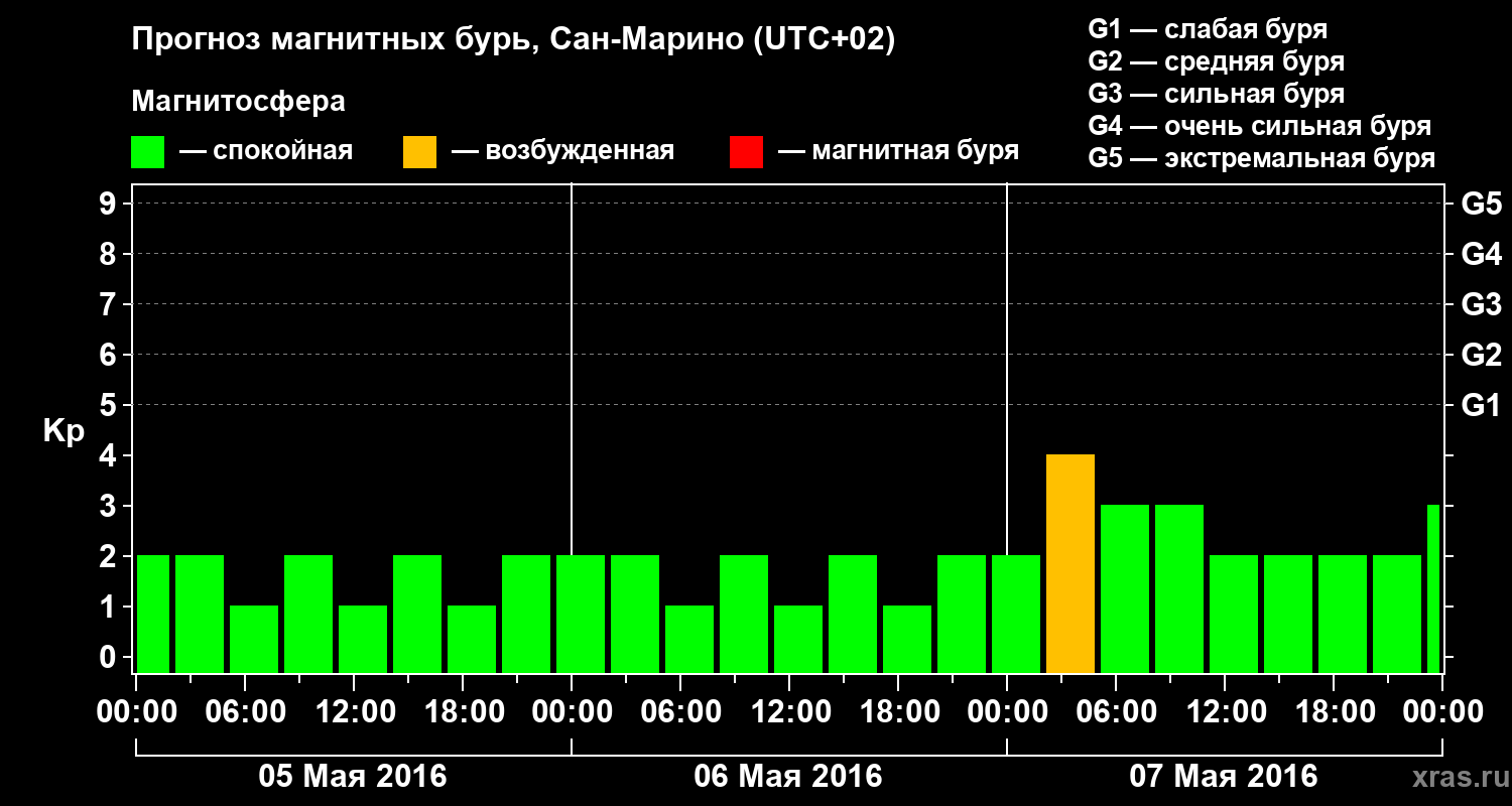 Прогноз магнитных бурь Сан-Марино — 5 мая 2016 года